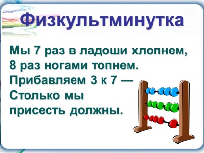 – И я вам тоже говорю: здравствуйте, доброе утро, ребята! – Посмотрите друг на друга и пожелайте доброго утра. – С чего обычно начинаем урок математики? (С устного счета)