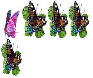 На цветке сидело 4 бабочки, одна улетела. Сколько бабочек осталось ? (3). Улетела еще 1 бабочка. Сколько осталось ?( 2) Улетела еще 1 бабочка. Сколько осталось ?( 1) Улетела еще 1 бабочка. Сколько осталось ?( 0)