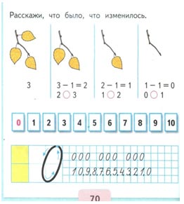 – Рассмотрите другой рисунок. – Что было, что изменилось? – Рассмотрите числовой ряд и скажите, где стоит число 0? – Назовите соседей этого числа