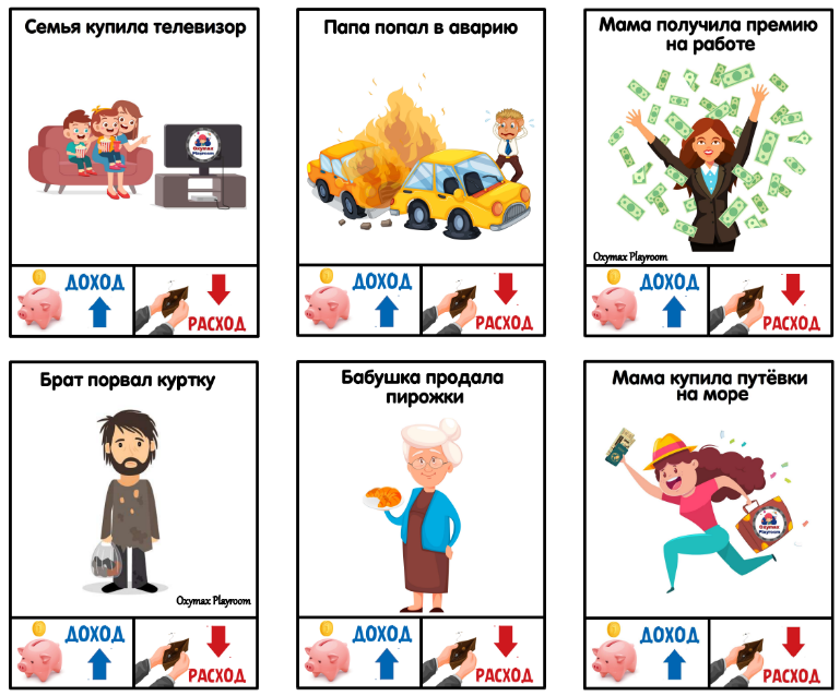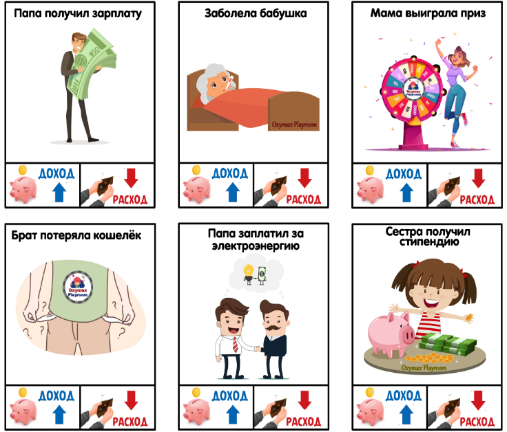 Решение практических ситуаций «Доход-расход» (ситуационные карточки) 3 монетки