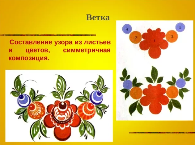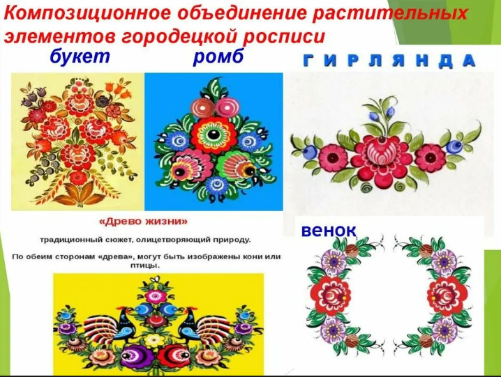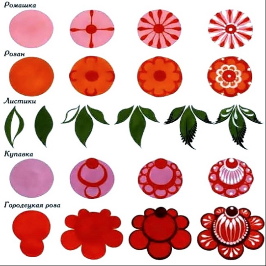 примере элементов городецкой росписи.