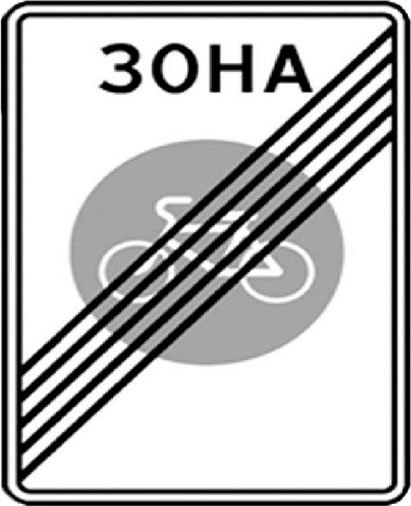а) конец велосипедной парковки б) конец участка, где у велосипедиста левостронее движение в) конец дороги с полосой для велосипедистов д) конец участка дороги, на котором велосипедисты имееют преемущество