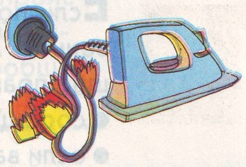б) электрический утюг (оставляют включенным без присмотра, …)