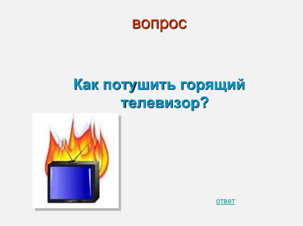 Представь, что ты остался один дома.У вас загорелся телевизор.Какими должны быть ваши действия?