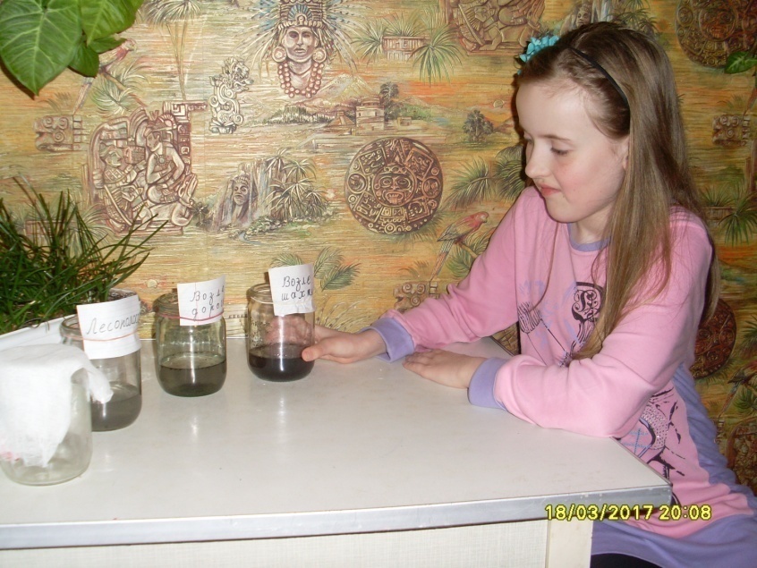 1.Самый грязный фильтр был после воды из сосуда, пробы которых взяты, возле шахты. Это объясняется тем, что шахта в воздух выбрасывает много пыли, грязи, летучей золы и сажи .