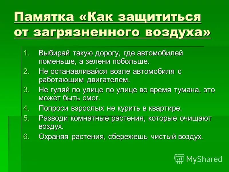 4.Сделать выводы о том, как защитить воздух от загрязнения.