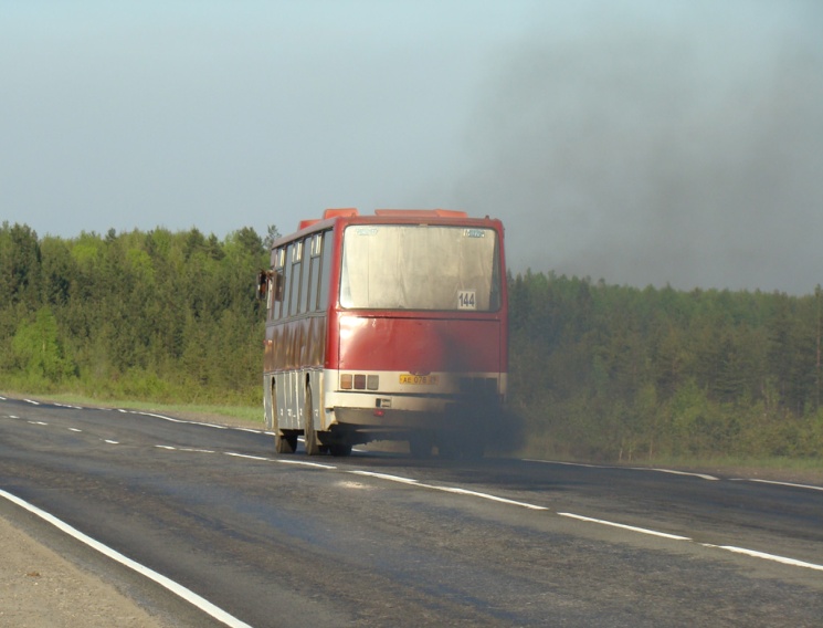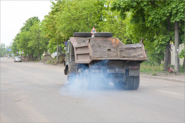 - А вы видели, как "Икарус" при разгоне выпускает черный едкий дым? При работе дизельного двигателя в атмосферу выбрасывается 16-18 килограммов сажи на 1 тонну сжигаемого топлива. Вообще на долю сажи приходится до 90% суммарной токсичности выхлопных газов.