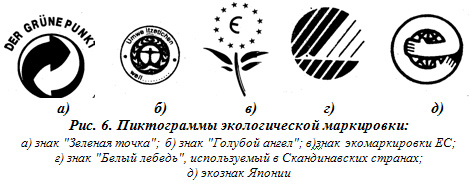 Продукция, маркированная знаком "Голубой ангел" (рис. 6 б), соответствует установленным требованиям, выполнение которых гарантирует экологическую безопасность. Например, автомобиль, имеющий такой знак, оборудован надежной системой очистки выхлопных газов.
