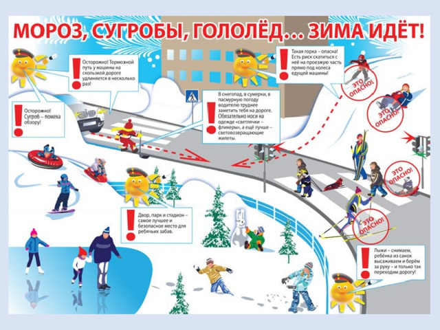 Познакомить учащихся с основными опасностями зимнего периода (лёд, гололёд, пиротехника, дорожное движение и др.).