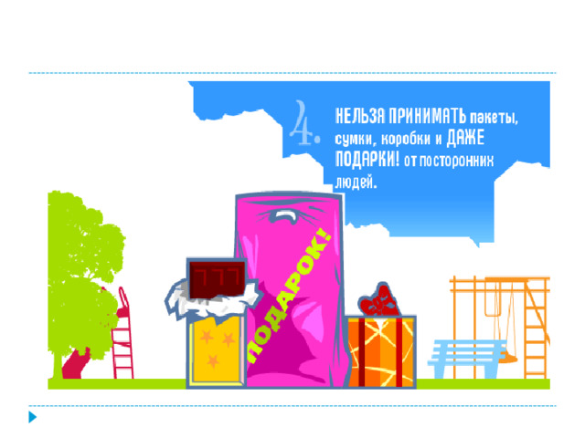 Если человек называет себя знакомым или другом твоих родителей, но лично тебе он незнаком, не соглашайся ни на какие его предложения, например, отвезти тебя к родителям. Ложь - одно из главных орудий преступников!