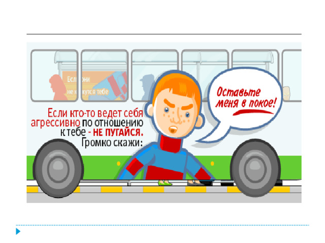 Старайся держаться в стороне от агрессивно настроенных людей и тех, чьё поведение кажется тебе подозрительным.