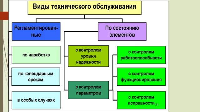 Техническоеобслуживание№1(ТО-1) предназначено для поддержания технически исправном состоянии , выявления и предупреждения отказов и неисправностей , а также снижения интенсивности изнашивания деталей , узлов и механизмов путем проведения установленного комплекса работ : контрольных смотровых и диагностических ; крепежно - регулировочных ; смазочно - очистительных ; электротехнических ; арматурных и других видов работ . ТО -1 проводят по « Положению »