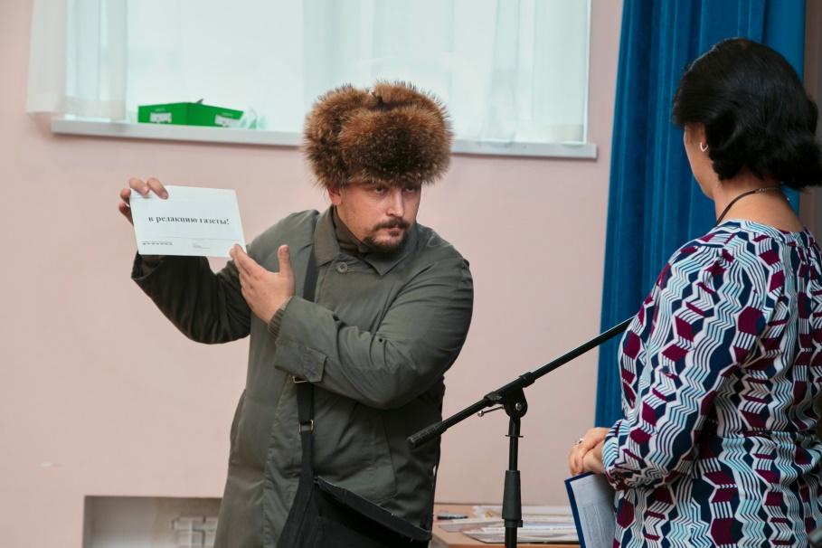 Ведущий: - Здравствуйте, почтальон Печкин! Это мастер-класс для юных журналистов школьного пресс-центра. Вам какая нужна редакция? Вы в какую газету направлялись?