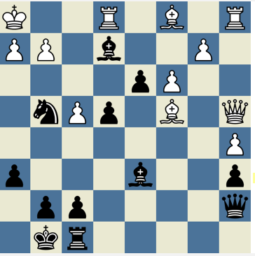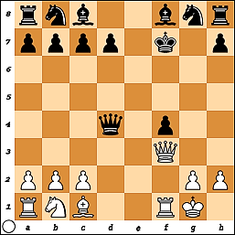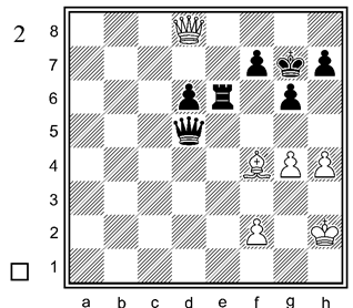 Теперь чёрным нельзя ходить Фg3, последует вечный шах. Но блестящая комбинация с жертвой ферзя завершает партию красивейшим матом: 29. … Ф : g2+!! 30. Кр : g2 Сf3+ 31. Крf1 Кh2x.