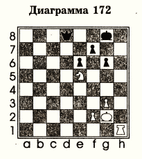 Решение задачи на диаграмме 172: Лh8+ - Кр:h8, Kf7+ - белые остаются с лишней фигурой.
