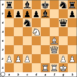 3) Kf3- g5- чёрные избрали путь на удержание материала, что, до сих пор, является одним из наиболее распространённых продолжений в развитии такой позиции.