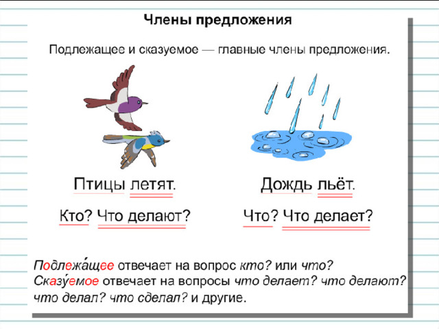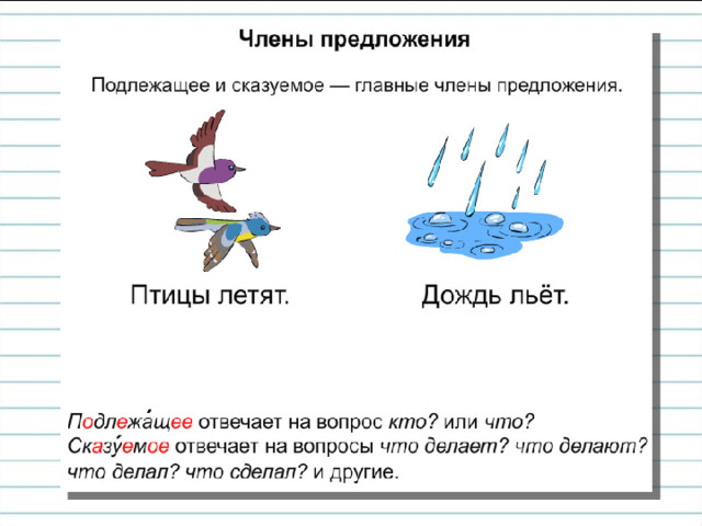 Урок знакомит с признаками главных членов предложения: подлежащего и сказуемого; формирует умение различать подлежащее и сказуемое, соотносить главные члены с основой предложения, находить грамматическую основу в предложении.