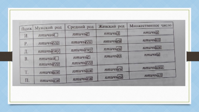 При склонении притяжательные прилагательные имеют следующие окончания: