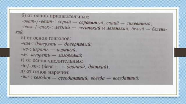 Словообразование прилагательных