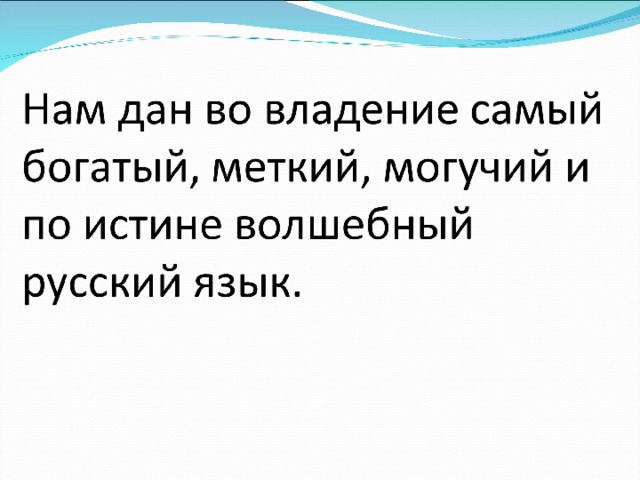 Нам дан во владение самый богатый, меткий, могучий и по истине волшебный русский язык.