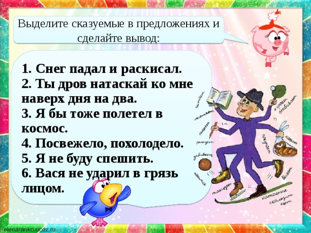 1)Продолжить развитие у детей орфографические и речевые навыки, умения определять морфологические признаки глагола и его роль в тексте.