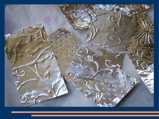 Широкие художественные возможности сулит создание барельефов методом тиснения по фольге. Рельефами по фольге украшают рамки для фотографий, шкатулки, точенные блюда и многое другое.