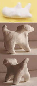 | Пальцами наметь и вытягивай лапы собаки под голо- вой. | Доска для лепки | Глина | |