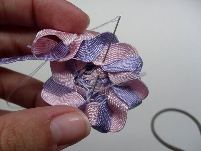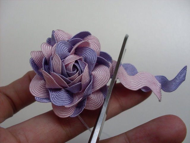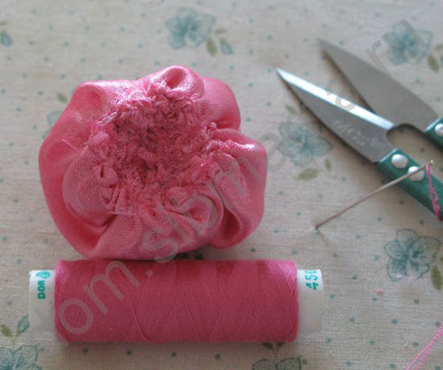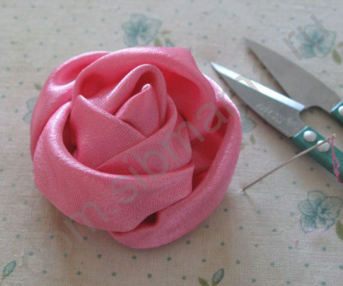 Оставшийся конец отрезаем и пришиваем ко дну, чтоб не лохматился. Цветочек готов.
