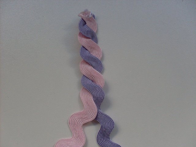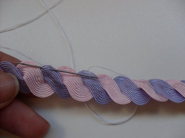 Берете две тесьмы, складываете вместе и аккуратно переплетаете между собой.