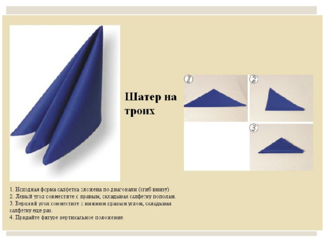 Рассмотрим несколько способов складывания салфеток
