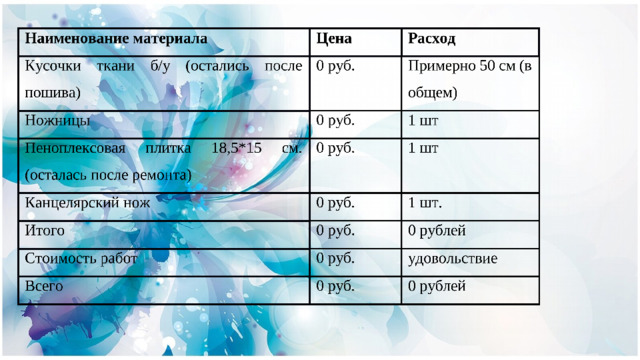Цель: способы применения лоскутов, оставшихся от шитья изделий.