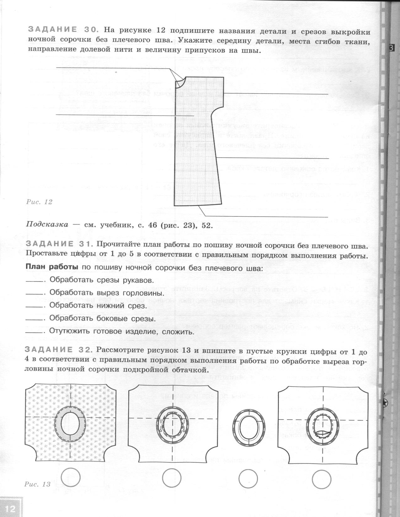 Вспомним план изготовления швейных изделий.