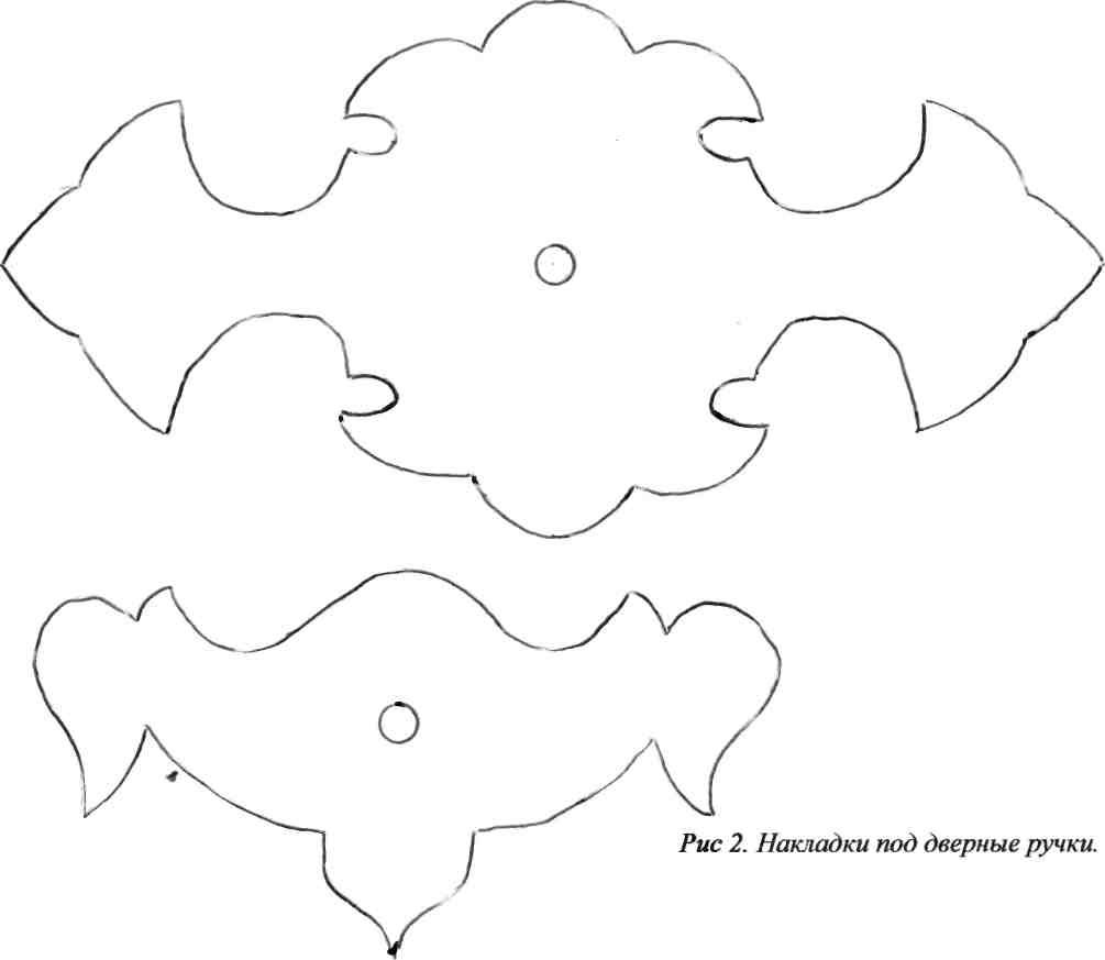 б) Переведите на заготовку с помощью шаблона рисунки будущих изделий (накладки под дверные ручки, вешалка для полотенца). Перевод осуществляется обводкой контура шаблона карандашом.