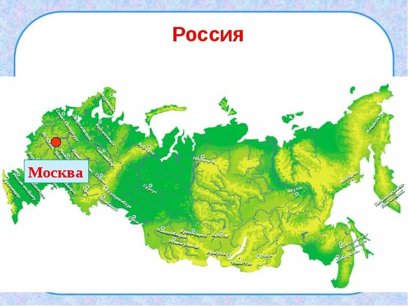 Россия-это наша большая родина. Вы родились в России. Россия – самая большая страна на свете, так велика, что над ее просторами почти никогда не заходит солнце. Когда стрелки кремлевских часов показывают три часа дня в Москве, то в Петропавловске – на Камчатке наступила ночь. Ни одного государство не имеет такой большой территории более 17 млн. кв. км и такой длинной границы, которая проходит и по суше и по воде. На свете много разных стран, но есть одна страна: от белых льдов до теплых рек раскинулась она. На карте России много голубого цвета. Это реки моря и озера. Есть реки – большие, многоводные: Обь, Енисей, Амур, Лена, Волга. Это пять из 22 главных рек земного шара. В Европейской части протекает самая длинная река в Европе – это Волга.