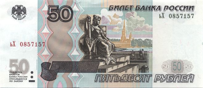 В Санкт-Петербурге есть много чего красивого и интересного. В том числе и Ростральные колонны, которые находятся на Васильевском острове. Так вот, на лицевой стороне купюры 50 рублей, как раз и изображена величественная статуя Невы у подножия колонны. Колонна была полностью сделана в 1815 году. На другой стороне денег – общий вид Ростральной колонны и здания Биржи. На деньгах написан город – Санкт-Петербург.