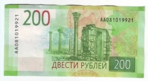 Лицевую сторону банкноты 200 рублей украшает изображение памятника Затопленным кораблям. Памятник можно увидеть в центральной городской бухте Севастополя недалеко от того места, где осенью 1854 года были затоплены семь боевых кораблей российской флота. В начале сентября 1854 город был подвержен осаде англо-французского флота. Корабли неприятеля технически превосходили русские корабли. Князь Меньшиков принял решение не вступать в бой с флотом противника. Чтобы не допустить вражеские корабли в городскую гавань, поперек фарватера было затоплено семь кораблей русского флота. Члены их экипажей встали в ряды защитников Севастополя. На оборотной стороне купюры 200 рублей можно увидеть изображение фрагмента еще одной достопримечательности Севастополя - музея-заповедника Херсонес Таврический.