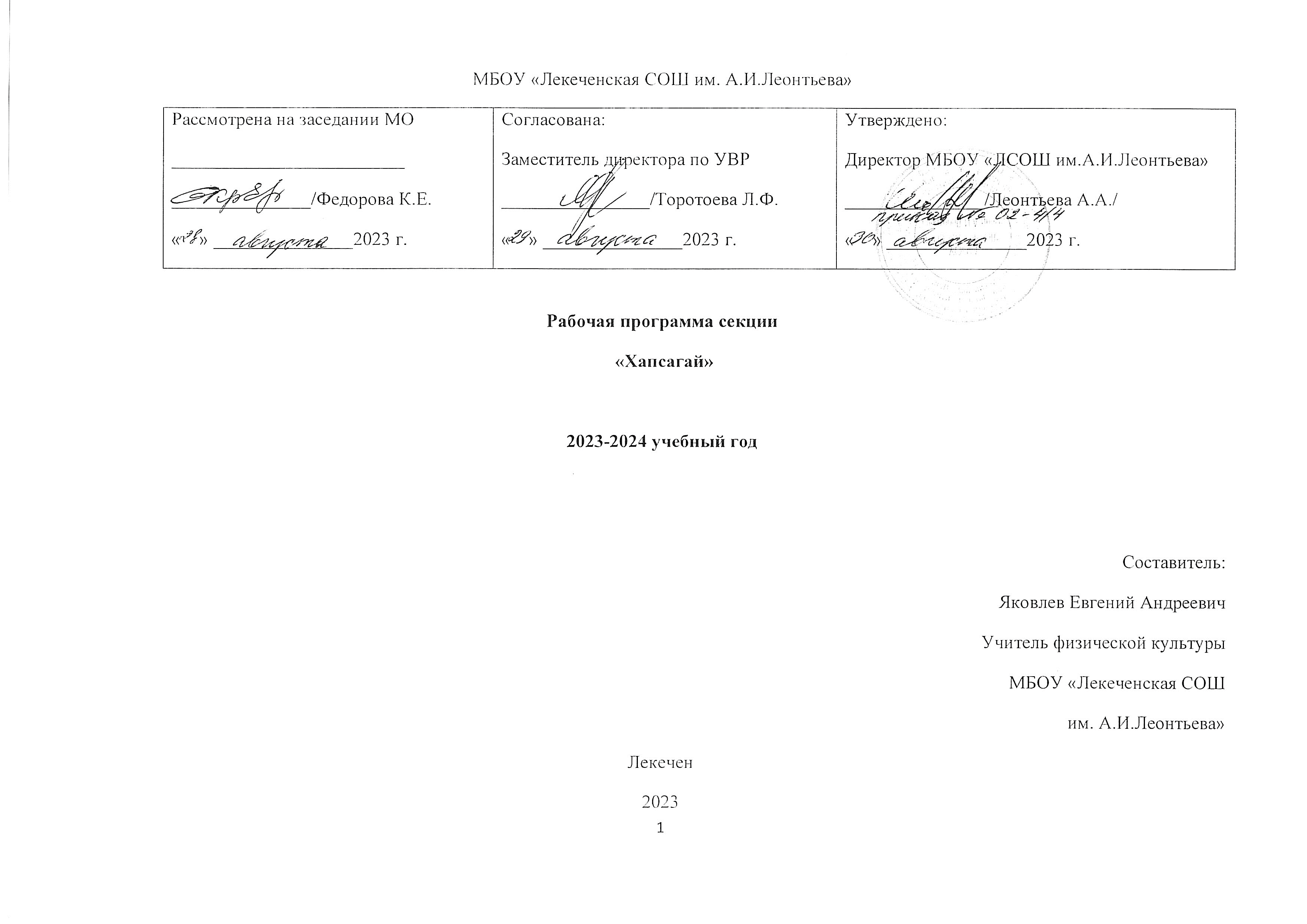 Рабочая программа секции «Хапсагай» разработана на основе следующих нормативных документов: