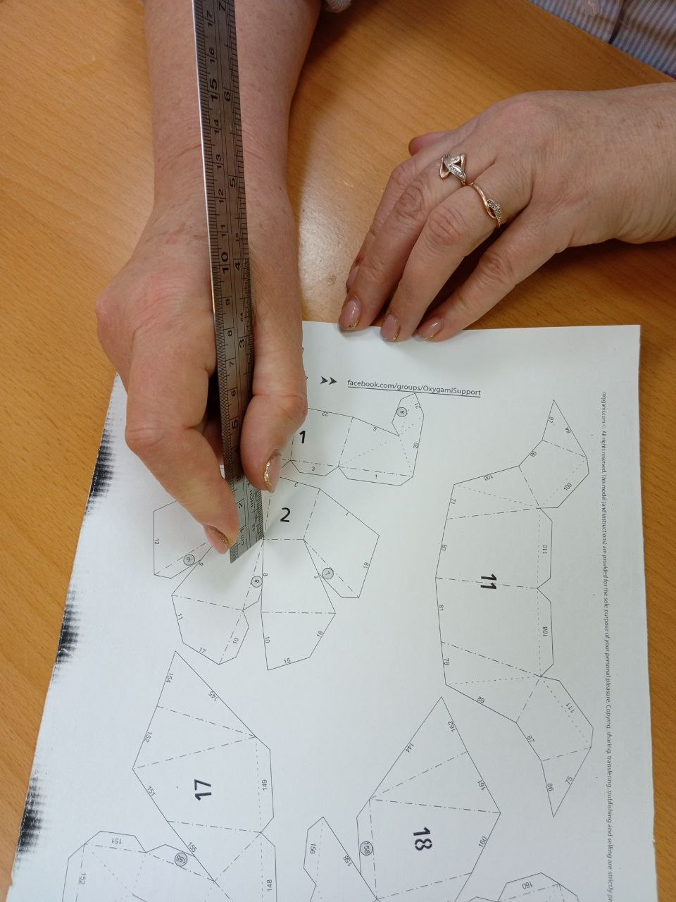 Существует три вида линий, согласно которым вырезаются заготовки. Сплошная линия — отрезать часть бумаги с помощью ножниц.