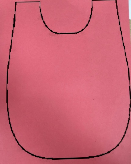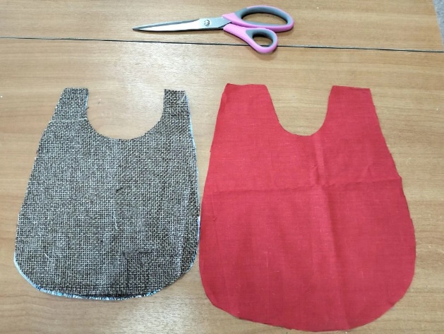 На плотном сукне обвели лекало и вырезали выкройку нагрудника. Из красной ткани сделали выкройку чуть большего размера.