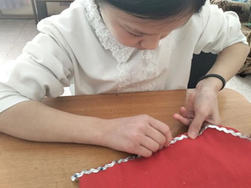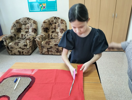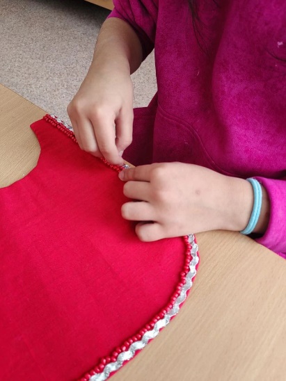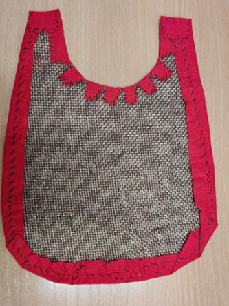 Пришили красную ткань к основе.