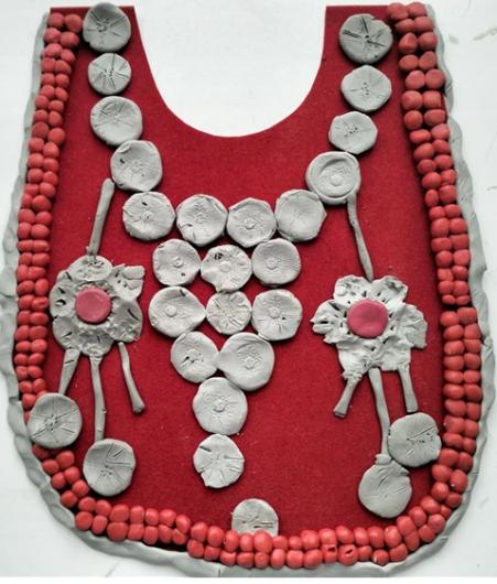 Изготовили эскизы нагрудников с использованием техник «Пластилинография» и «Фроттаж»