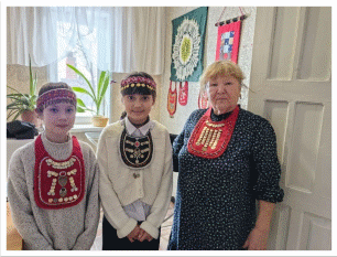 По нашей просьбе Гульнара Яугитовна организовала встречу с Рамилей Саяновной. Побывав у неё в гостях, мы узнали много нового и интересного. Она рассказала, что женские национальные украшения интересовали её еще с детства. Она вступила в этносообщество «Ок инэй» и участвует в различных марафонах по изготовлению украшений. Первая её работа – нагрудник «Сакал». Его носили женщины именно нашей местности.