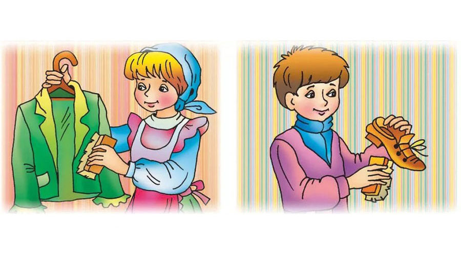 Воспитатель. Чтобы вас не называли неряхой, нужно следить за чистотой тела, ухаживать за своей одеждой и обувью. Этим мы будем заниматься сегодня на трудовом часе. Мы будем повседневно ухаживать за своей одеждой и обувью.