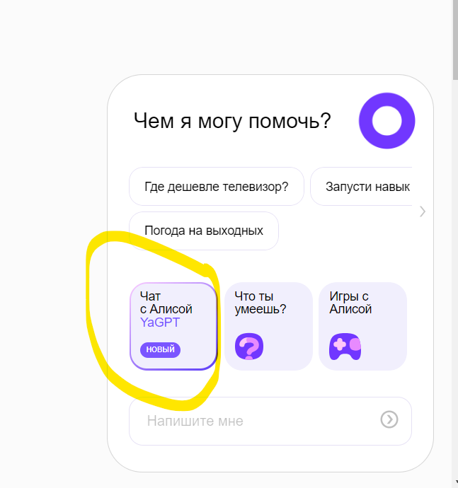 В ыбираем: Чат с Алисой YaGPT