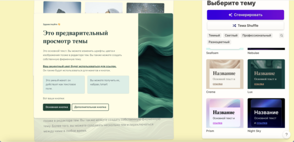 6. Снова выбираем «Продолжить». Выбираем шаблон или генерируем новый дизайн. Опять же, любой слайд можно изменить.