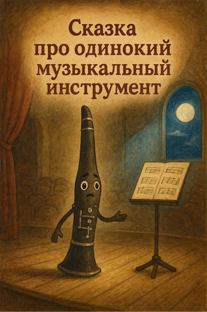 Ж ил-был в старом забытом оркестре маленький кларнет по имени Кларчик. Его когда-то любили, тёрли до блеска и использовали в каждом концерте, но времена изменились. Теперь он пылился на верхней полке, куда добирались только редкие пауки да звуки чужих репетиций. Казалось, что все вокруг чем-то заняты: скрипки репетировали свои вечные страдания, так преувеличенно жалобные, что даже потолок иногда поскрипывал в ответ; барабаны мерялись громкостью, устраивая соревнования, кто громыхнет так, чтобы хрустнул старый паркет; флейты изображали воздушных принцесс, которые якобы и дышать-то громко не могут — спугнут вдохновение.