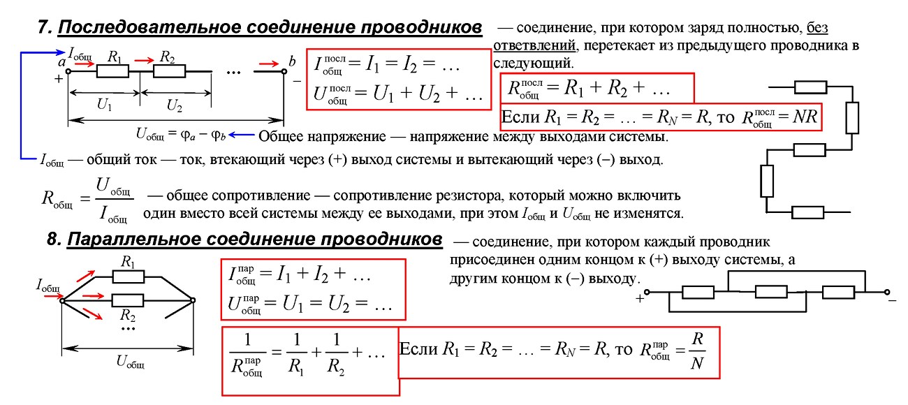 Эта работа требует усидчивости. Необходимо выписать все нужные формулы в отдельную тетрадь (словарик). Разбить их на группы, ориентируясь на их сходство между собой. Например, когда речь пойдет в задачах о соединениях цепях, то можно все формулы собрать в группу «Соединения».
