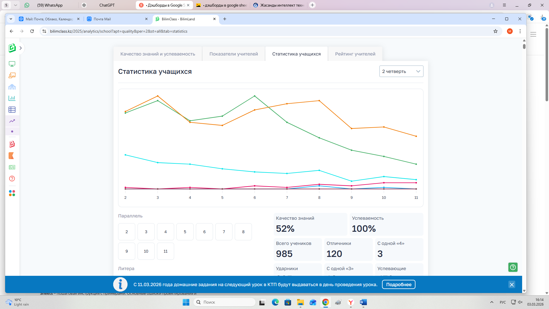 Управление качеством образования на основе данных - применение аналитики и дэшбордов для мониторинга успеваемости, посещаемости, результатов внешнего оценивания и принятия обоснованных управленческих решений.