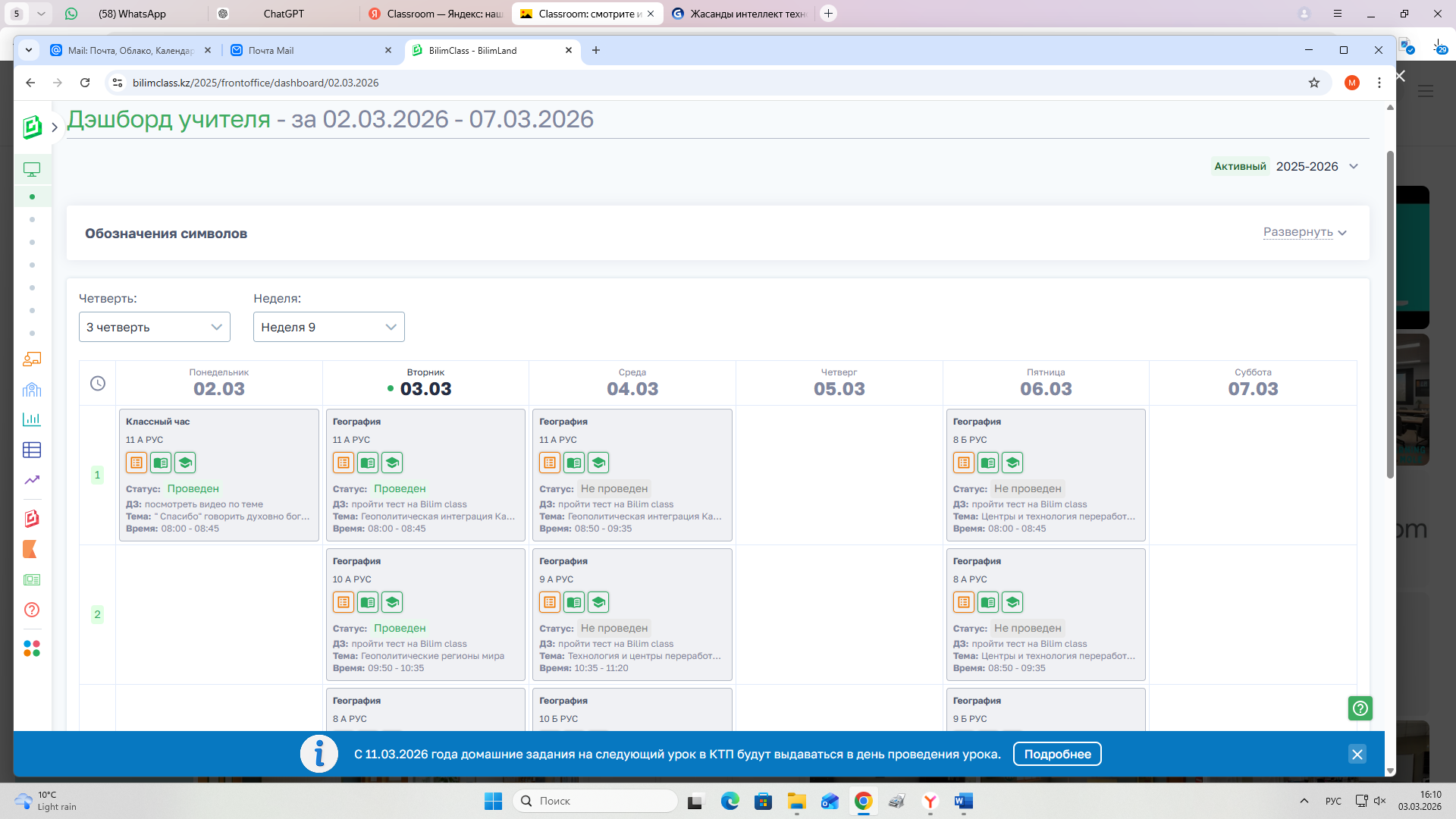 Ключевыми результатами программы являются повышение профессиональной компетентности педагогов, оптимизация управленческих процессов, рост качества образовательного процесса и формирование устойчивой цифровой образовательной среды. Программа соответствует стратегическим направлениям развития образования Республики Казахстан и имеет практическую значимость для всех участников образовательного процесса.