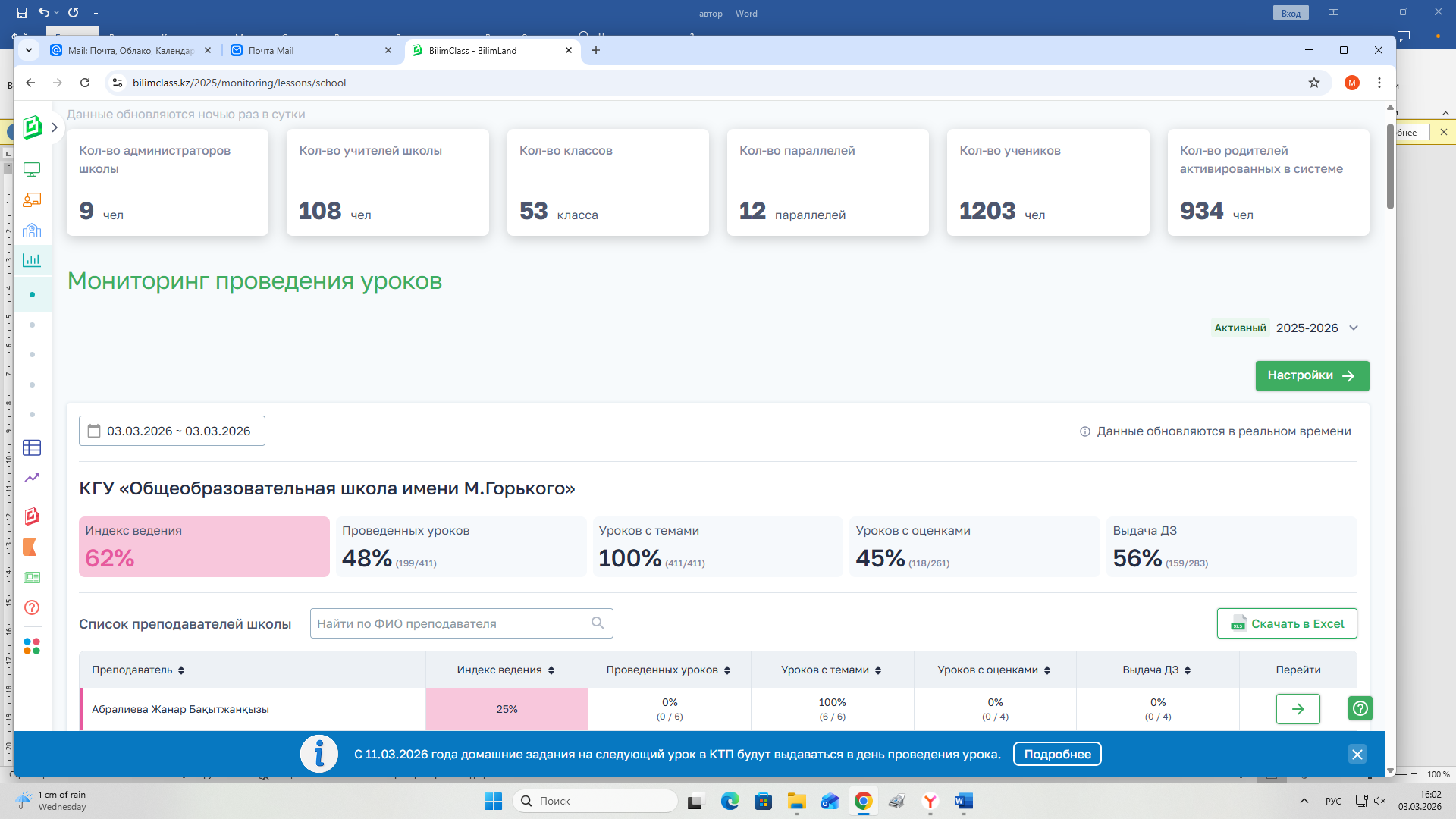 В современных условиях стремительного развития информационно-коммуникационных технологий и перехода образовательной системы Казахстана к цифровой парадигме, эффективная организация научно-методической работы школы становится ключевым фактором обеспечения качества образования и устойчивого развития педагогического коллектива. Реализация авторской программы «Цифровая трансформация научно-методической работы в общеобразовательной школе» направлена на системное обновление процессов методического сопровождения, оптимизацию управленческих и педагогических практик, внедрение современных инструментов аналитики и цифровых технологий, а также на повышение профессиональной компетентности педагогов и администрации школы.